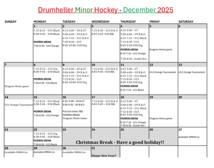 December Schedule